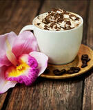 Алмазная вышивка «Чашечка кофе и нежная орхидея» 30x40 см