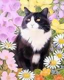 Картина по номерам «Черно-белая кошка в нежных цветах» 40x50 см