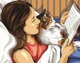 Картина по номерам «Кошка с хозяйкой читают книгу» 40x50 см