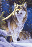Алмазная вышивка «Серые волки в еловом лесу» 21x25 см