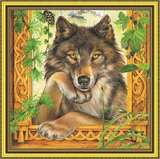 Алмазная вышивка «Серый волк и сосновые шишки» 30x30 см